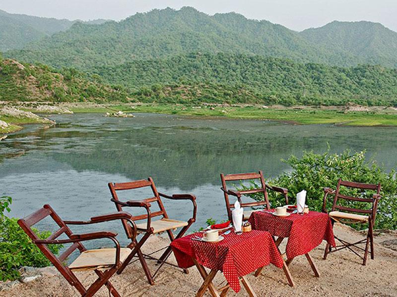 The meals can be had outdoors under thatched huts overlooking the hills fanned by breeze wafting through the trees.